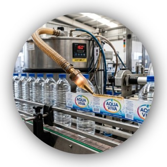 El Hot Melt para Etiquetas es un polímero termoplástico diseñado para permanecer sólido a temperatura ambiente; al calentarse se funde, presenta adhesividad inicial; al enfriarse recupera su estado sólido proporcionando unión resistente. Se aplica en líneas de conversión mediante cabezales dosificadores o extrusores a temperatura controlada, logrando distribución uniforme sobre el soporte; el rápido tiempo de solidificación reduce tiempos de ciclo, mejora productividad operativa además de minimizar atascos en equipos.